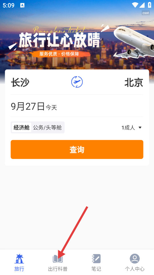 2、进入APP后,点击底部导航栏中的【出行科普】选项,进入出行科普页面。