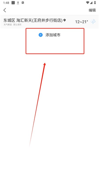 3.添加城市: 点击加号按钮后,选择“添加城市”选项。