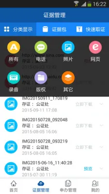 2、软件界面清爽,操作方便,能将多种电子证据永久保存至云端,随时调出使用。