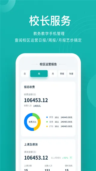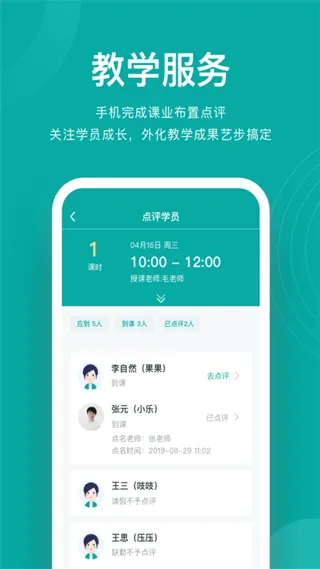 3. 智能考勤管理,课程每日提醒,点名签到直接打通补课课消,实现一体化流程。