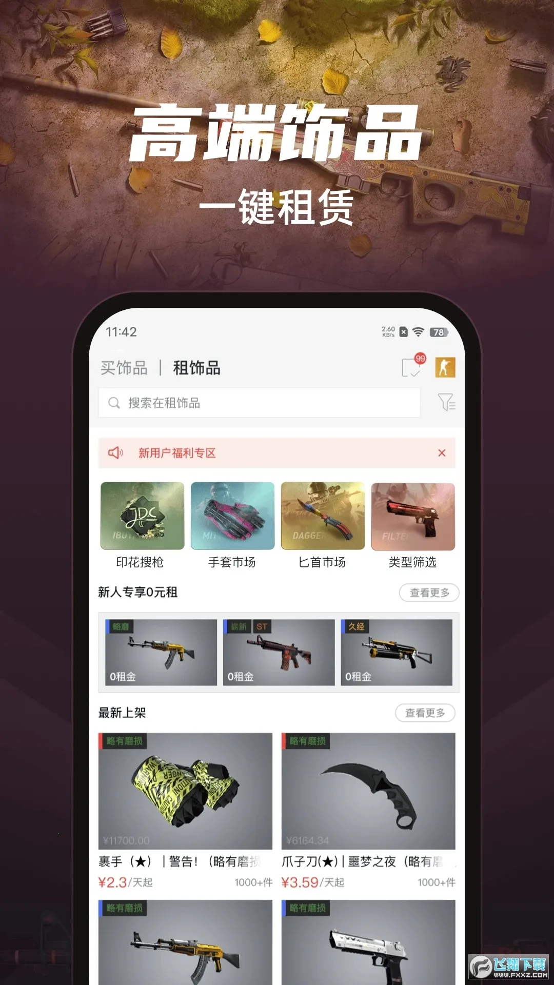 2、然后点击最上方租饰品选项