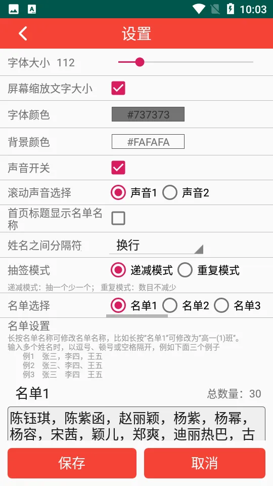 2、能完全自主定义抽签内容列表,还可调整视觉与听觉元素,如字体、颜色、音效等。