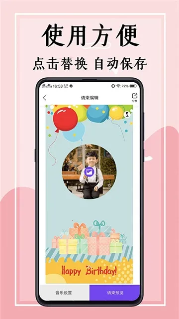 4. 分享方便,能快速将精心制作的请柬发送给亲朋好友。