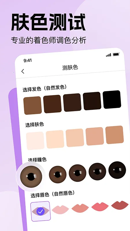 3、有穿搭风格、发型、体型、肤色、脸型测试等功能,还有电子衣橱、衣橱搭配等特色,助你轻松管理衣物、打造个性造型。