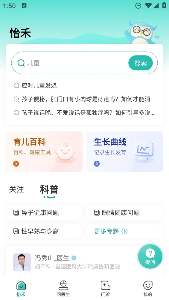 怡禾app是专注医疗服务与健康管理的科学育儿软件。集问诊、资讯、社区讨论等多板块。用户能线上交流育儿经验,向医生问询诊疗方案,阅读科普知识。可免费不限量提问,有专业医生解答。支持记录宝宝生长曲线,有育儿百科,还有1000医生等在线执业。在深圳等地有门诊,提供多科室诊疗服务,使用教程清晰,能帮家长解决育儿难题。